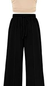 MASCOMODA Womens 2 Piece Lounge Set Sleeveless Crop Tops Wide Leg Pants Sets