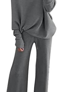 Linsery Womens One Shoulder Knitted Tracksuit Casual 2 Piece Set