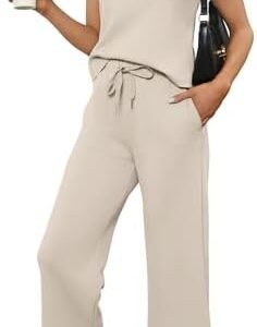 Aleumdr Women’s 2 Piece Outfits Sweatsuit Fleece Sweatshirt Wide Leg Sweatpants