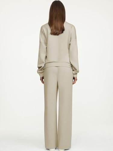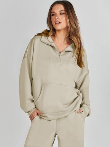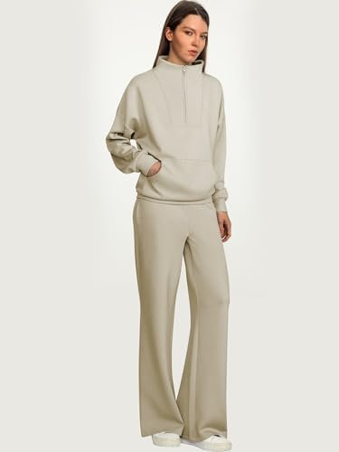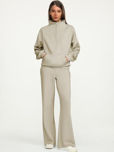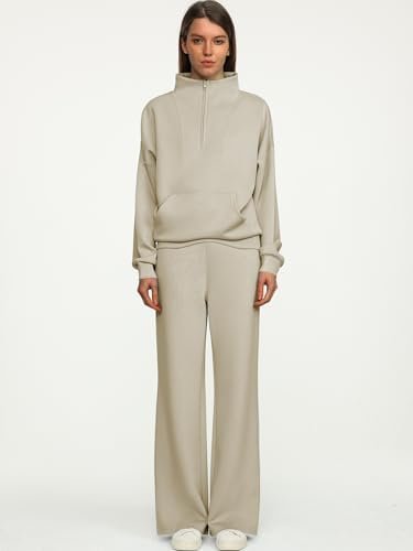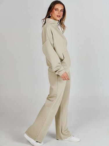 ANRABESS Womens 2 Piece Outfits Sweatsuit Quarter Zip Oversized Long Sleeve Sweatshirt Wide Leg Sweatpants Lounge Set