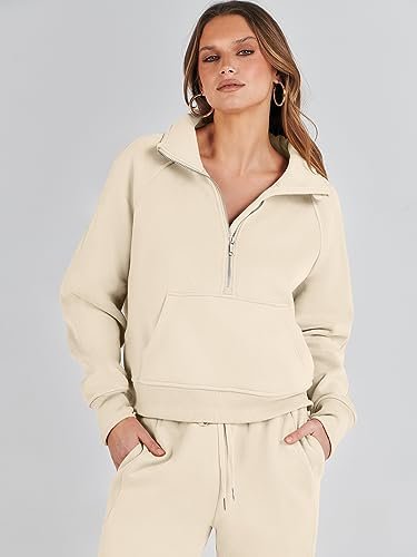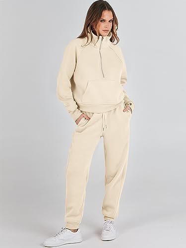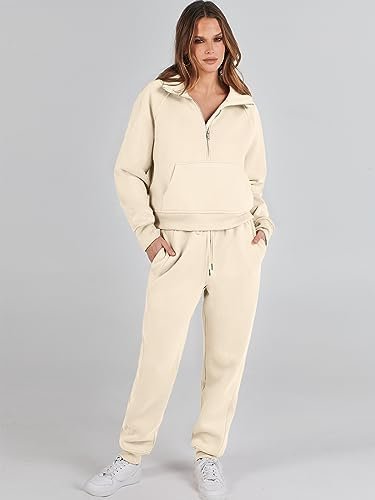 ANRABESS Women’s Two Piece Half Zip Crop Sweatsuit