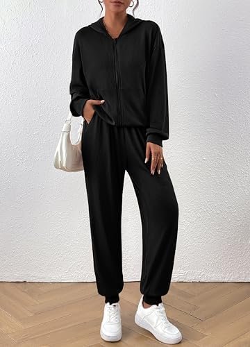 Black Sweatsuits For Women Fall WinterCoffee Tracksuit For Women HolidayNavy Blue Pants Sets For WomenTwo Piece Fall Outfits For Women 2024Casual Business Outfits For Women Airport Outfits For Women 2024 Holiday Outfits