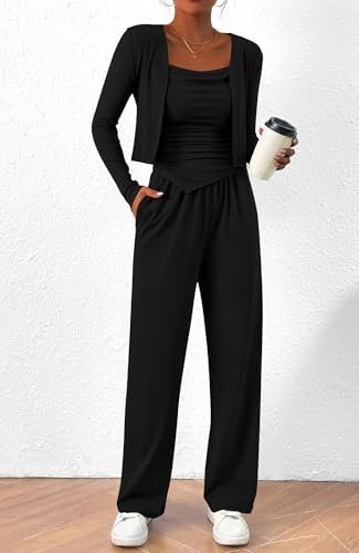 Cami Vest Wide Leg Pants And Cardigan Sweatsuits