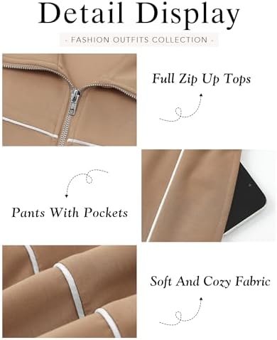 This Lounge Set Includes A Comfortable V Neck Zipper Coat Sweatshirt Tops And A High Waist Long Sweatpants .