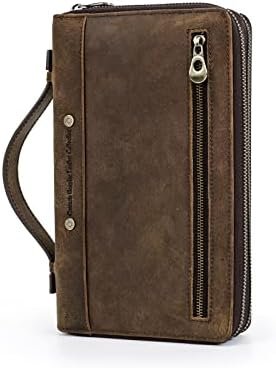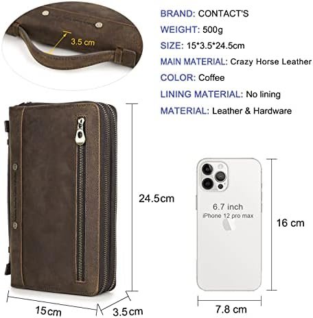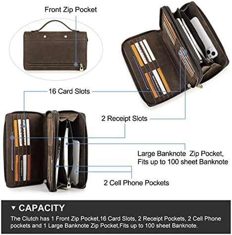 2. 【FUNCTIONAL DESIGN】: This man’s handbag is equipped with 2 zipper pockets, 16 card slots, 2 item storage slots, 1 checkbook storage slot, 2 Cell Phone pockets; 1 zipper coin/cash storage bag, etc. Moreover, it is equipped with a wristband and made of high-quality head layer cowhide,1 front zipper pocket can put your passport, it is a must-have good partner for travel, making travel more comfortable