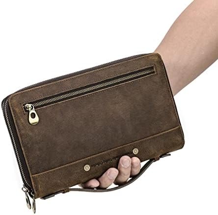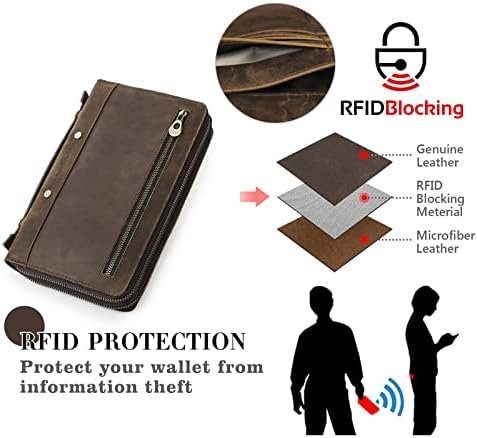 Crazy Horse Leather Men Clutch hand Bags Genuine Leather Purse RFID Wallet Large Capacity Business Card Multifunction Zipper Handbag Nice and smooth texture, really soft & comfortable to touch, Make sure the handbag durable, comfortable and luxury. One for years!