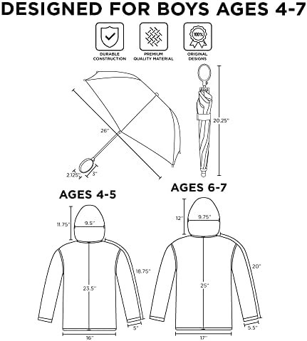 Fun and Practical: No rain will stop him and he will always be ready for all daily activities with his fun, stylish and uniquely designed children’s rain poncho and umbrella set.