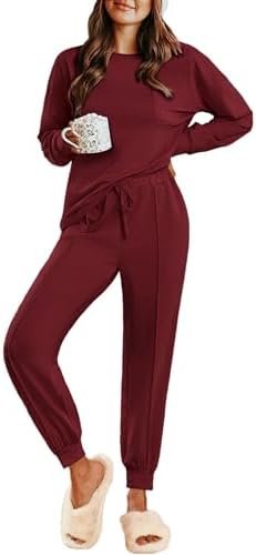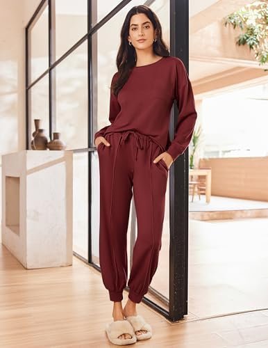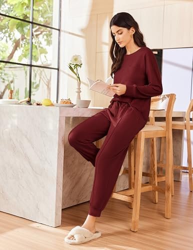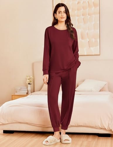Ekouaer Lounge Sets for Women 2 Piece Long Sleeve Jogger Pajama with Pockets