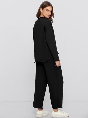 Glamaker Womens Casual Long Sleeve High Low Pullover Wide Leg Pant Set