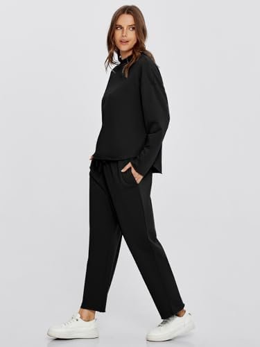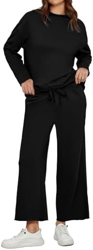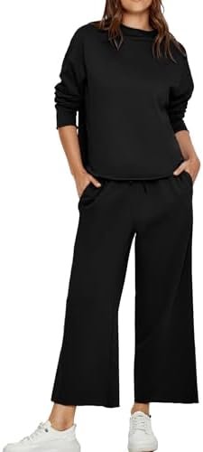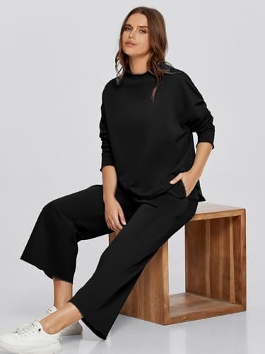 Glamaker Women 2 Piece Lounge Set Casual Long Sleeve Mock Neck Top Wide Leg Pant