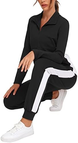 Ladies Long Sleeve Tracksuits 2 Piece Tops with Zipper and Side Striped Pants with Pockets