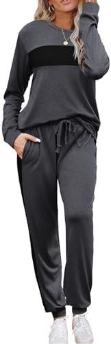 Women’s Color Block 2 Piece Tracksuit Crewneck Long Sleeve Tops Long Sweatpants