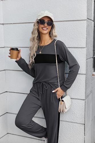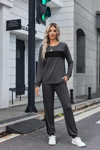 HOTOUCH Women Casual 2 Piece Workout Outfit Soft Long Sleeve Pajama Sets