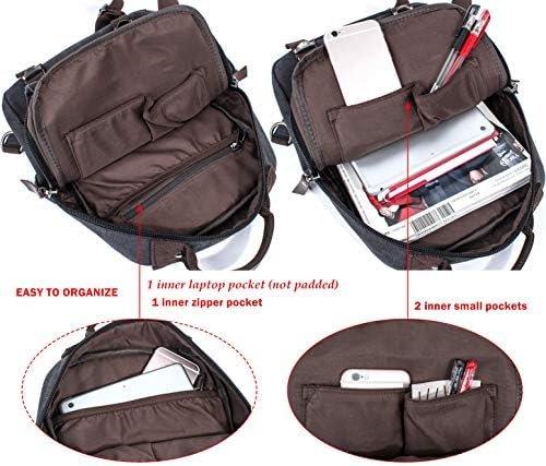 Timeless Vintage StyleVersatile Organization Inside and OutThis canvas backpack is not a large backpack, but it is a great size to take to a day trip or shopping.The bag can be either carried with the hand handle or adjustable shoulder strap.