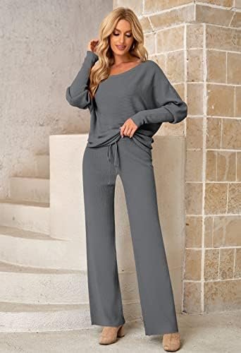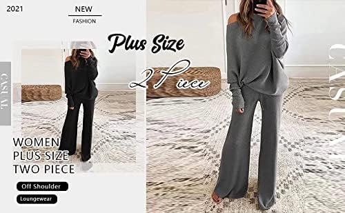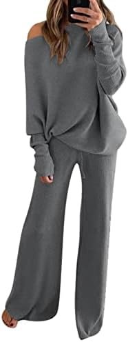 Linsery Womens One Shoulder Knitted Tracksuit Casual 2 Piece Set