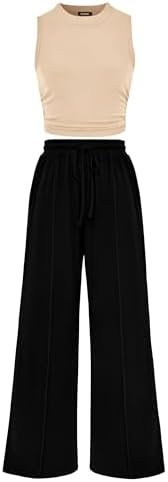 Our sleeveless outfits are made from soft ribbed knit fabric that is ideal for warm weather.Sweat Suit for Women 2 Piece Set/Airport Outfits for Women 2024 SummerMatching Wide Leg Pants Sets for Women/Spring Clothes for Women 2024