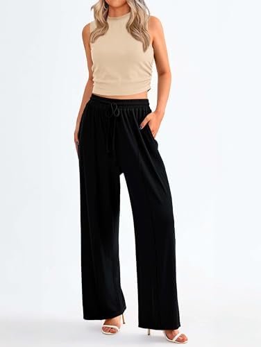 Colors:Black two piece loungewear sets for women/apricot two piece pants set for women/light blue outfits for women 2 piece sets/wine red classy outfits/pink two piece outfits for women/camel womens sweatsuits 2 piece set/apricot sleeveless fitted tops and wide leg pants sets women 2 piece outfits