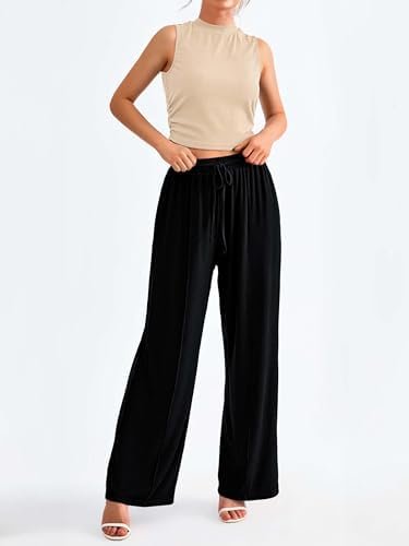 MASCOMODA Womens 2 Piece Lounge Set Sleeveless Crop Tops Wide Leg Pants Sets