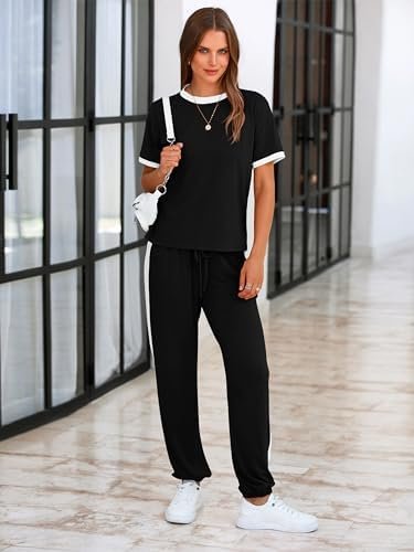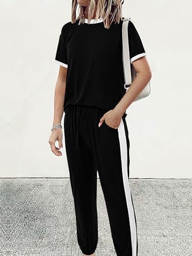 Women 2 Piece Outfits Sets:Our lounge set includes short sleeve tops and long pants,loose style for daily casual.