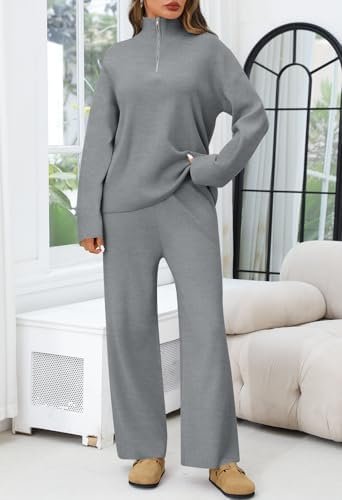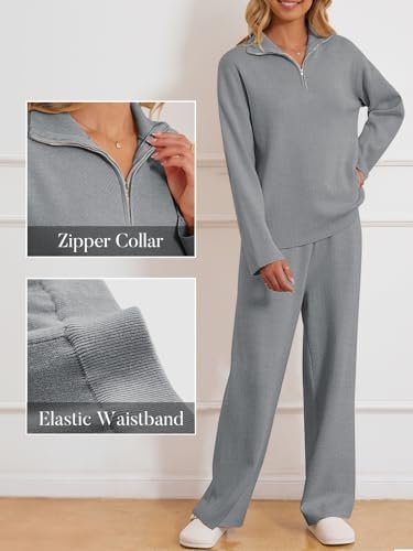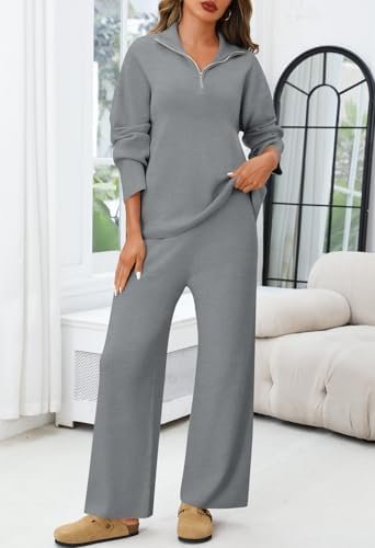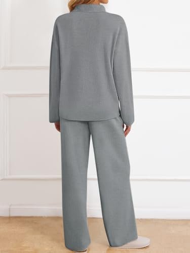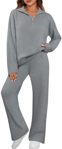 This 2 piece set includes a cozy quarter-zip sweater top and wide leg pants tracksuit, providing an effortlessly chic and comfortable look.