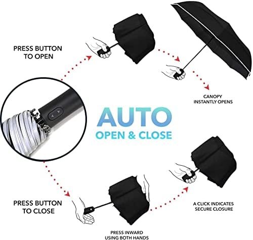 Is it easy to carry ? Yes, it measures only 11/14 inches and can be placed in a variety of bags, which even a primary school student can easily manipulate How does it work ? Take out the umbrella, press the button, the umbrella automatically opens, press the button again, the umbrella closes, and then you close it toward the center, hear a click, the umbrella is finished Have a problem ? You simply log into your account, find the seller, write to the seller, tell your problem, and offer help indefinitely Waterproof bag ? Along with the umbrella comes a plastic waterproof bag so you don’t have to worry about your umbrella getting your bag and clothes wet