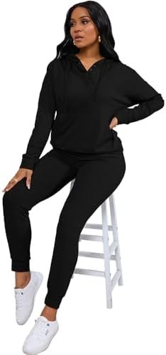 Two Piece Outfits For Women, Long Sleeve, Hoodie, Pullover, Button,Pull On.Elastic Band, Tops And Pant Sets With Pockets.Comfortable fabric, minimalist design, easy to match.
