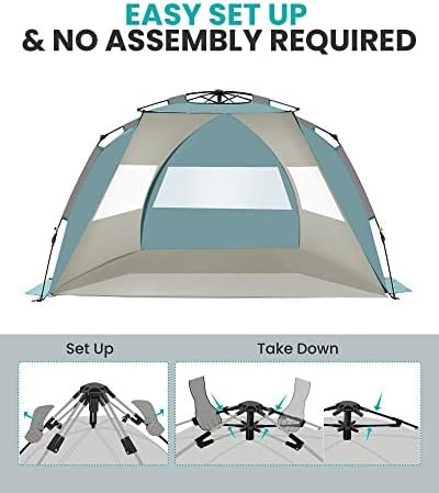 Easy Set Up and Portable: This pop up beach tent allows to set up in seconds, without complicated installation steps. Frustrated days of putting up and taking down large beach tents has gone! Lightweight and easy to fold back with a compact carrying bag for easy transport and storage