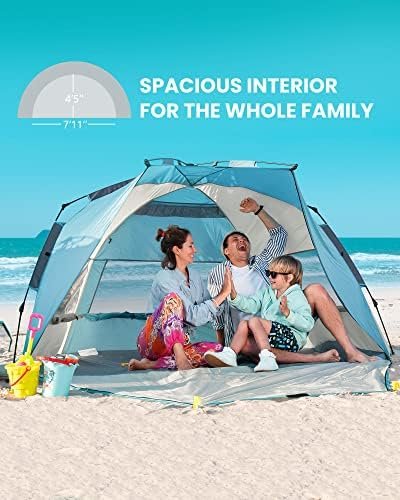 Luxurious Space: The beach pop up tent is enough room in the XL beach tent for 2 adults and 2 kids to sit in the inside. Spacious design provides a comfortable space for cooling shade and relaxation
