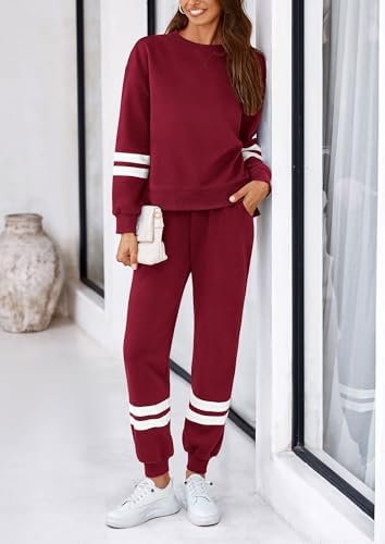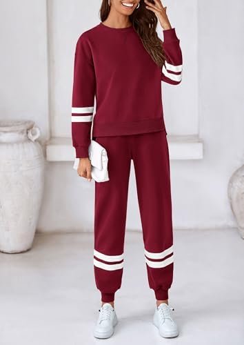 PRETTYGARDEN Women’s Two Piece Sweatsuit Sets Striped Matching Outfits