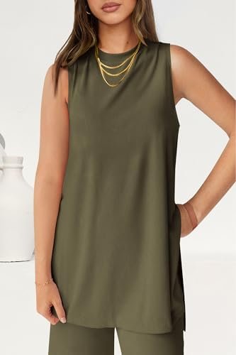 PRETTYGARDEN Womens Matching Sweatsuits High Low Split Hem Tank Tops
