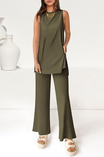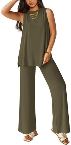 PRETTYGARDEN Women Casual Outfit Crewneck Tank Top and High Waisted Pants Set