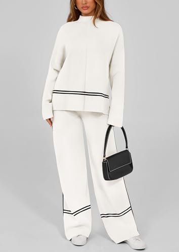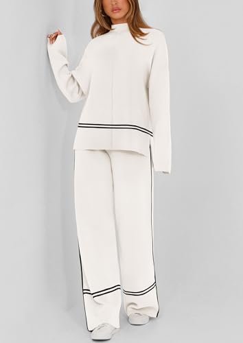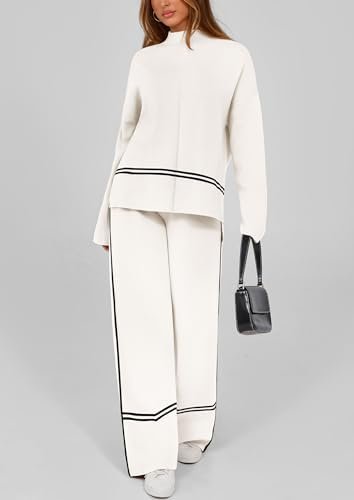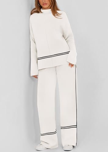PRETTYGARDEN Women’s Loungewear Sets High Low Sweater Palazzo Pants Tracksuits