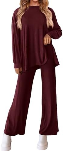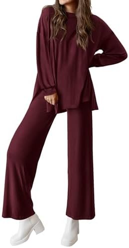 PRETTYGARDEN Women’s 2 Piece Lounge Set Side Slit Top And High Waist Pants