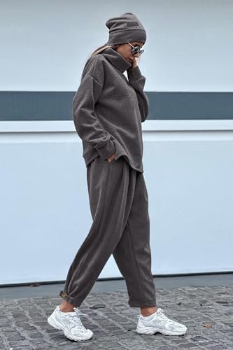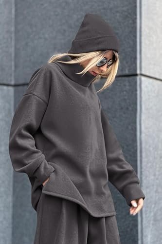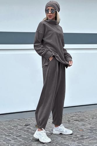 PRETTYGARDEN Turtleneck Pullover Fall Shirts For Women Y2K Pants With Pockets