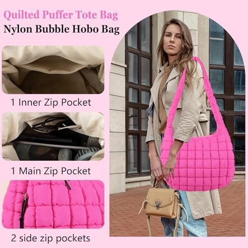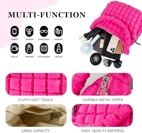 Quilted Puffer Tote Bag Large Crossbody Shoulder Bag with Zipper