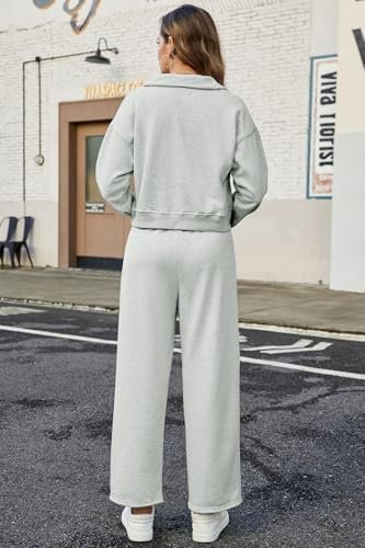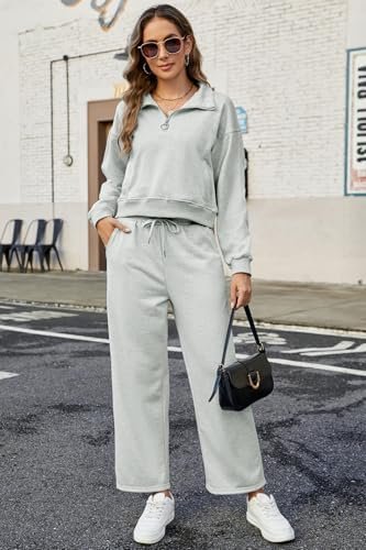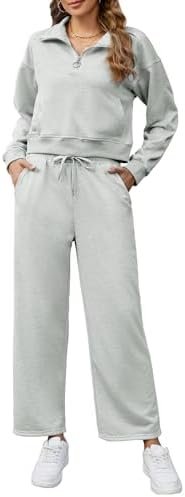 Moreone Women 2 Piece Outfits Set Half Zip Sweatshirt Wide And Leg Sweatpant
