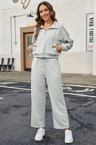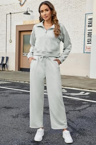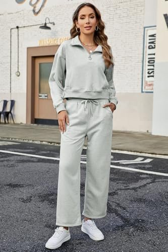 Moreone Womens Half Zip Sweatshirt and Wide Leg Sweatpant