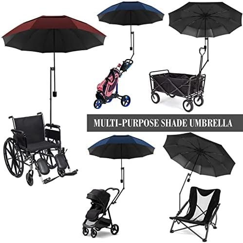 Our golf umbrella is a clamp-on shade canopy that can be carried around and liberate your hands. Whether you are taking a stroller, golf bag, yacht, or wheelchair out to play, resting on beach chairs, courtyards, and tables, or watching your favorite players run on the course, it provides the best sun protection.It is a large golf umbrella .When open, the 43.3″ size canopy spans 50.4inches and the 49.2″ size measures 55 inches. The Golf Cart umbrella stand connector clip can be connected to square and tubular surfaces, and the golf umbrella holder can be tilted at multiple angles to achieve a perfect angle to block out sunlight.