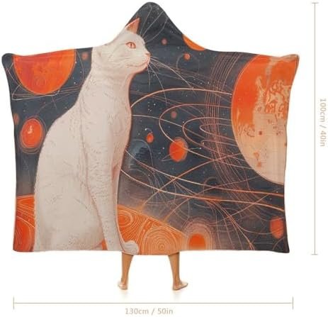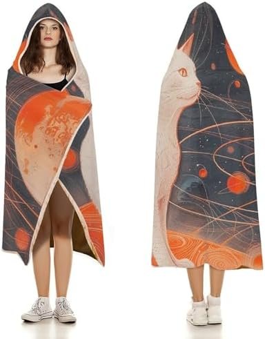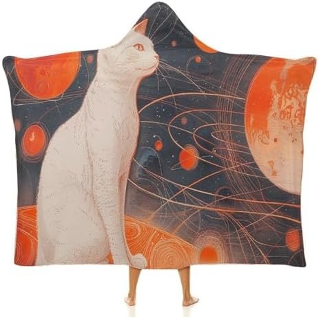 Adult Cozy Plush Flannel Blanket Wearable Blanket Hoodie – Wearable Blanket Wrap – Womens Cape With Hood – Sherpa Blanket Poncho – Cozy Blanket Shawl Wraps for Women Gift – Oversized Soft Sherpa Fleece Hooded Blanket Cats And Planets Blanket – Warm Cozy Plush Flannel Blanket for Adults Women Men Sweatshirt Gifts