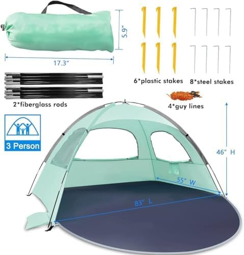 Light Weight & Portable: Our beach tent is light weight, portable and easy to fold down with a compact carrying bag. Small size makes it easier to travel and store. It’s convenient to carry anywhere you want. Just go on a beach trip with your family! (Tips: It is recommended to enlist a helping hand from another person for an easier assembly and setup)