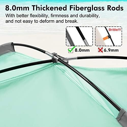 8.0mm Thickened Fiberglass Rods: We increased the thickness of the fiberglass rods to 8.0mm to make it more flexible, sturdy and durable. It can support the tent more stable and will keep shape even after long time use.