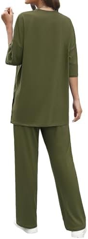 Cnlinkco Crew Neck Top Wide Leg Pants Loose Fit Two Piece Set