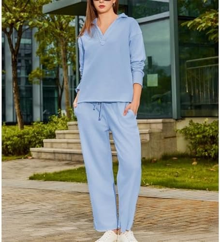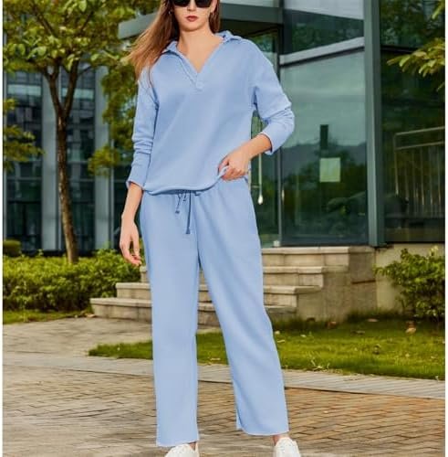 Trendy V Neck Long Sleeve Sweatshirt Tops and a Wide Leg Long Pants