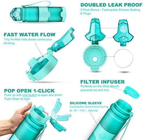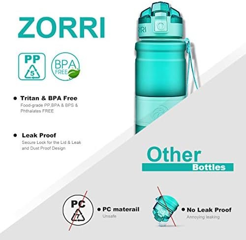 Durable Leakproof Design: ZORRI water bottles feature a double leakproof design with a flip cap lid and removable filter for convenience.